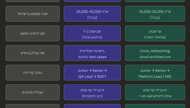 אם אתה בתחילת הקריירה: QA הוא כניסה מצוינת לעולם ההנדסה אם אין לך ניסיון קודם. DevOps הוא צעד טבעי אחרי שצברת בסיס הנדסי.