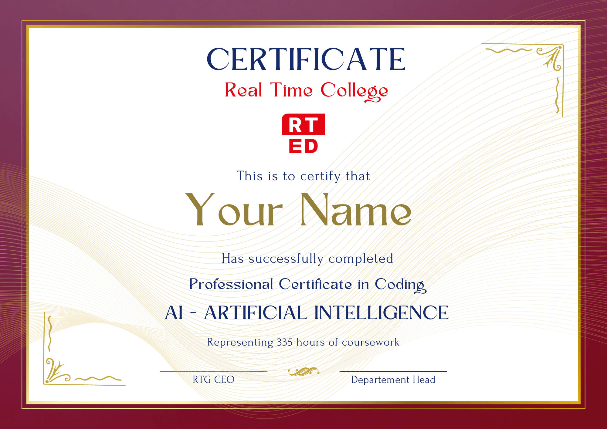 בסיום מסלול ההכשרה תוענק תעודת גמר AI Artificial Intelligence של Real Time College