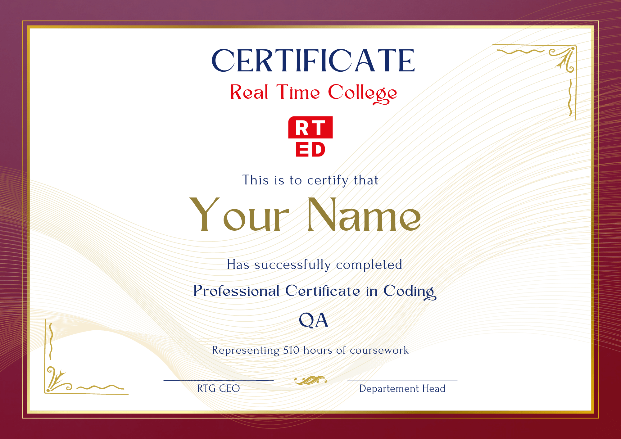 בסיום קורס QA & Automation תוענק תעודת גמר מטעם RTG.